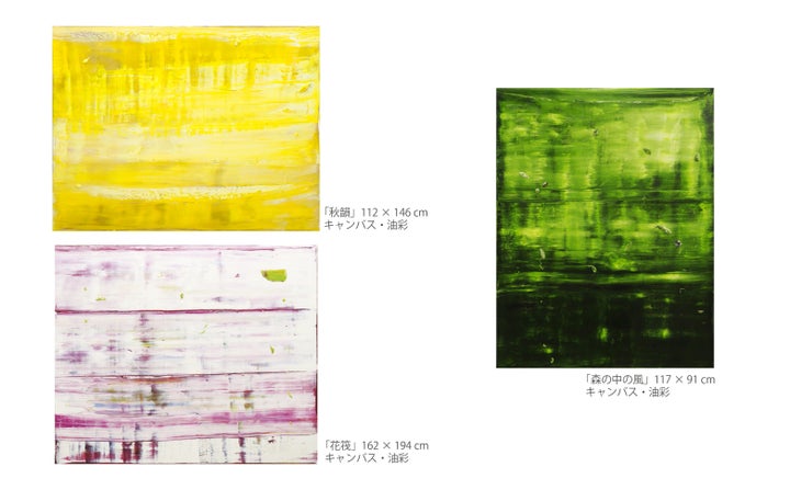 - 新作約40点が展示され、大胆な絵の具の伸ばしや色の重ねによって深いマチエールが生み出されている。