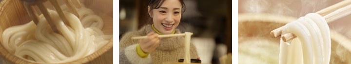 また、上戸さんが釜揚げうどんを召し上がる姿も印象的です。