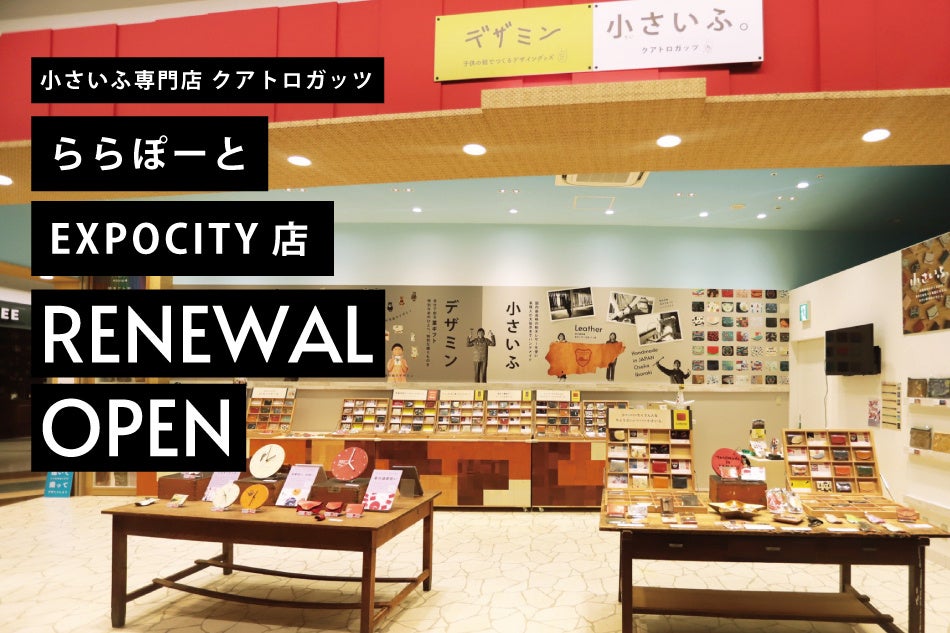 - 大阪茨木発のレザーブランド「小さいふ。クアトロガッツ」のららぽーとエキスポシティ店がリニューアルオープン