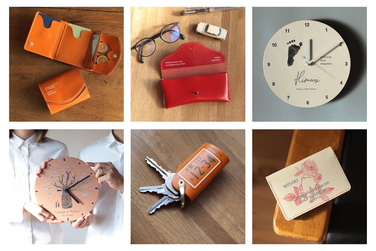 - 名入れやメッセージを入れることができる革のギフトも新登場
