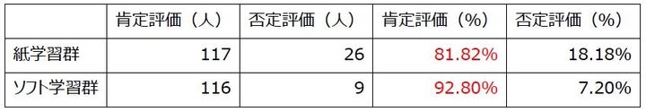 - ソフト学習群と紙学習群の両方で学力向上が見られ、ソフト学習群では特に高い効果が示されました。