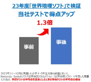 - 「進研ゼミ小学講座」会員の小学45年生268名を対象に、世界地理ソフトと紙教材の学習効果を比較する調査が行われました。