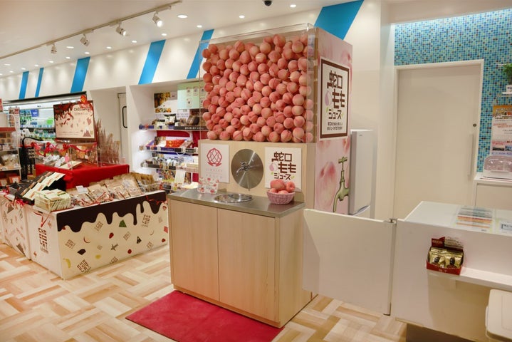 株式会社静鉄リテイリングは、富士山静岡空港内の「しずおかマルシェ」で、山梨県産のジュエリーピーチを使用した「蛇口ももジュース」を販売しています。