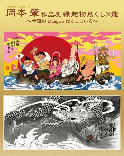 - 岡本先生の作品には干支の龍の原画や赤富士、青富士、招き猫、達磨、フクロウ、Kabamaruシリーズなどが展示される