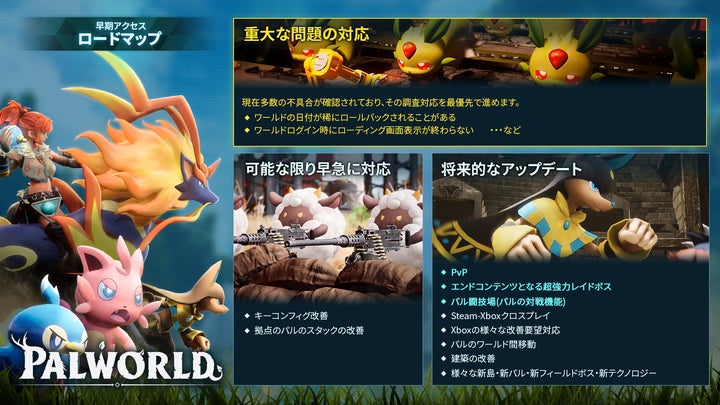 - 早期アクセス版では重大な問題への対応を最優先し、その後は新機能の実装やアップデートを進める予定