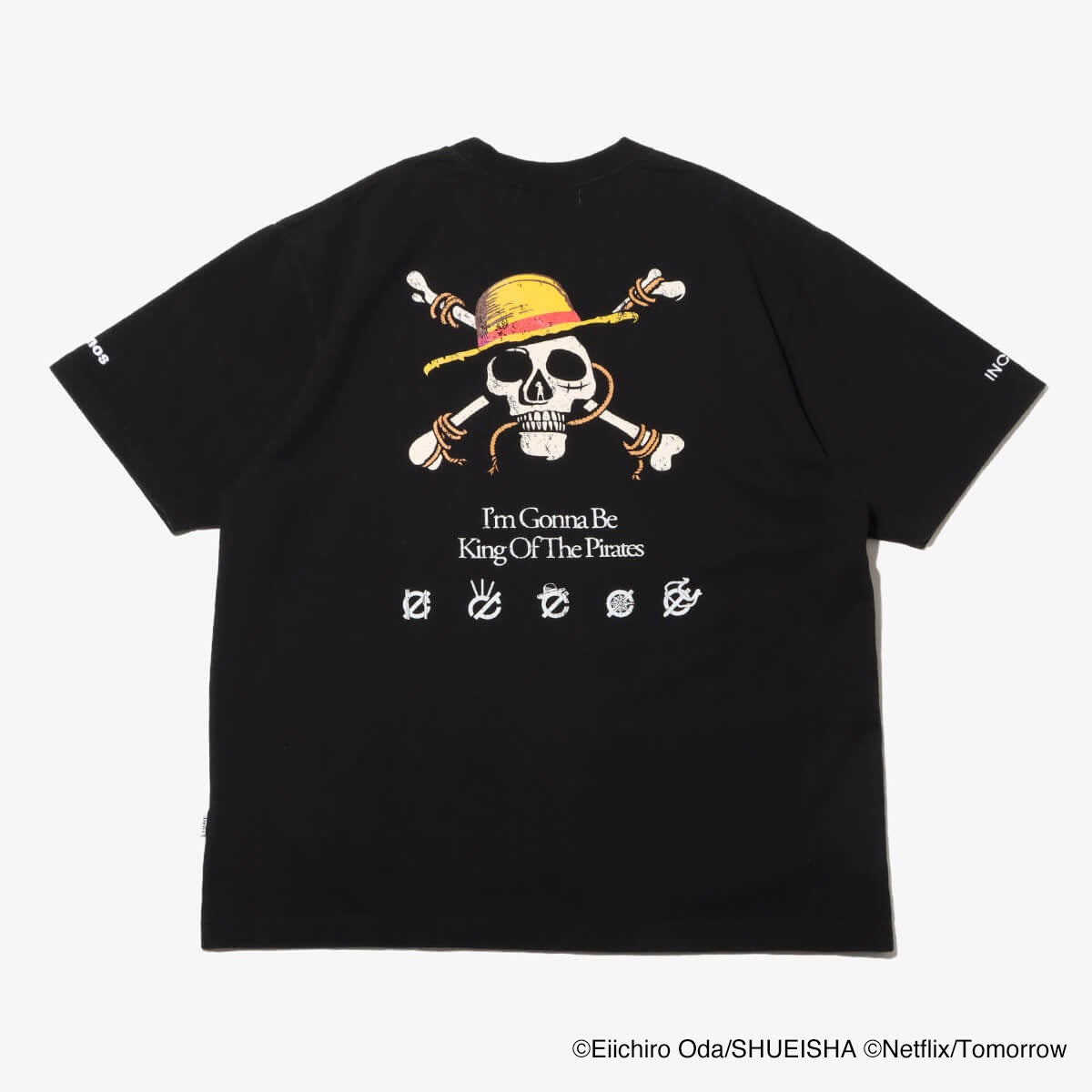デザインにはゴーイング・メリー号や「麦わらの一味」の海賊旗がプリントされ、袖口には「INCRM」のロゴも入っています。