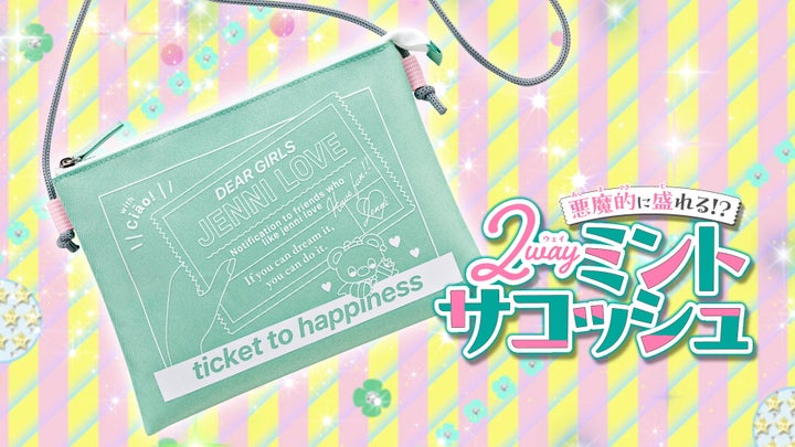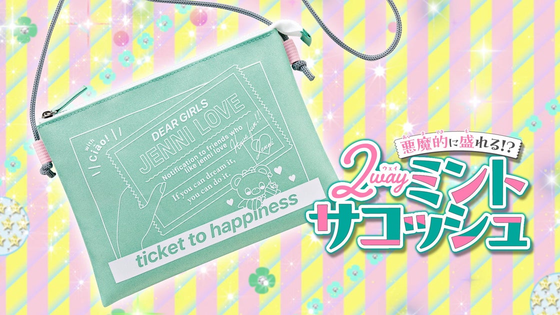 今回の付録は流行のサコッシュで、小学生に大人気のブランド【JENNI love】と人気連載『アクマでこれは恋じゃない!』(七野ナナ)がコラボしたオシャレなバッグです。