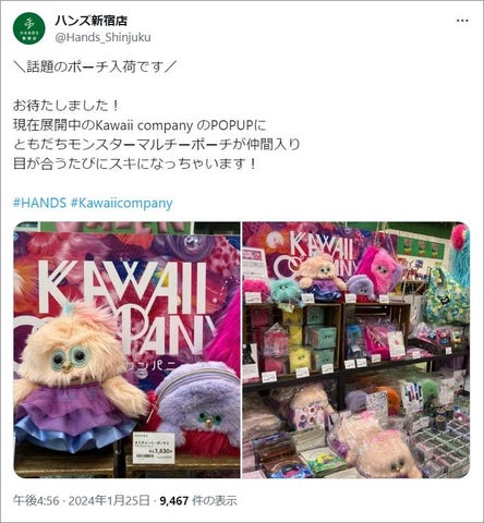 「KAWAII COMPANYポップアップ」は、ハンズ新宿店の2階イベントスペースで1月9日から2月14日まで開催されます。
