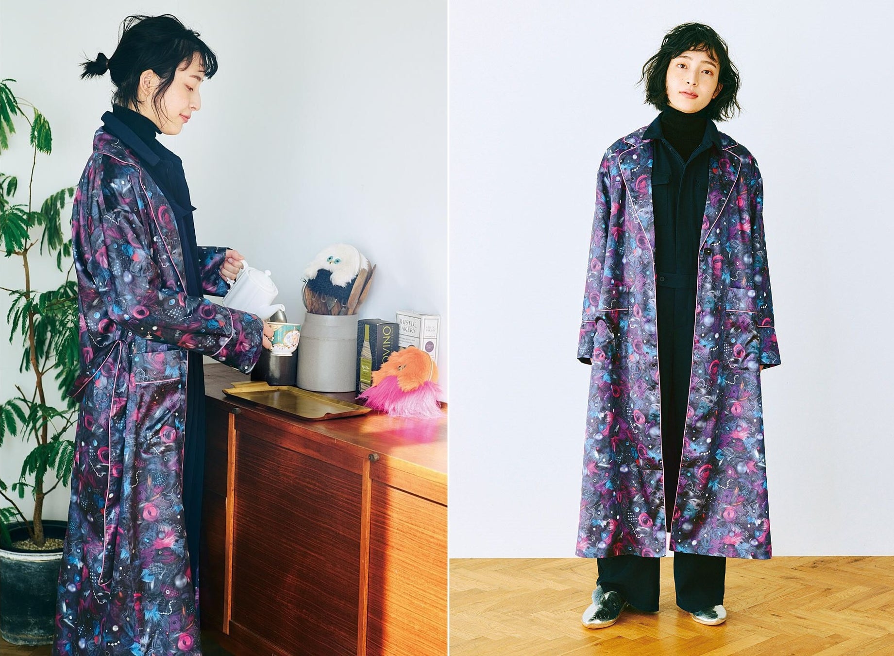 KAWAIIアトリエコートは、勝負時に着ることで気合いが入るアイテムで、カワイイパープルの裏地が付いています。