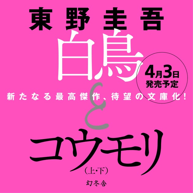 - 2024年4月3日に東野圭吾の最新文庫『白鳥とコウモリ』が幻冬舎から刊行される。