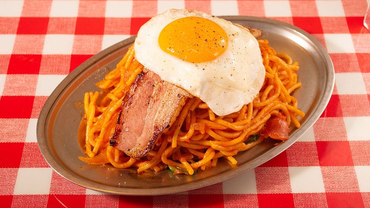 パンチョのナポリタン専門店では、自慢の極太麺と手作りのソースを提供しており、追加トッピングも可能です。