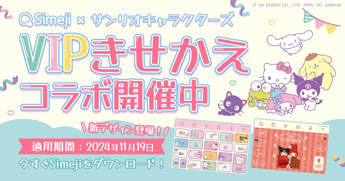 - サンリオキャラクターズのコラボ限定きせかえデザインがSimeji VIPで利用可能