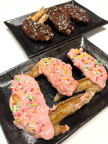 チョコレートでコーティングし、カラフルシュガーでデコレーションした「伝説の手羽先」を提供します。