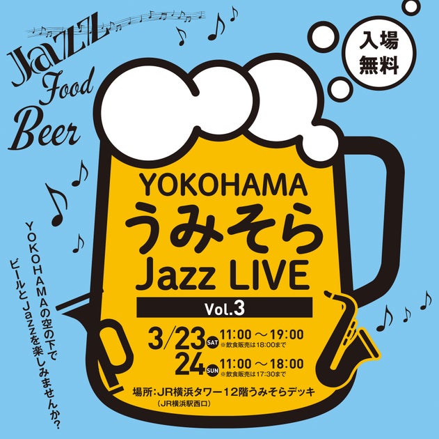 2024年3月23日から24日にかけて、JR横浜タワーの屋上広場で「YOKOHAMAうみそらJazz LIVE Vol.3」が開催されます。