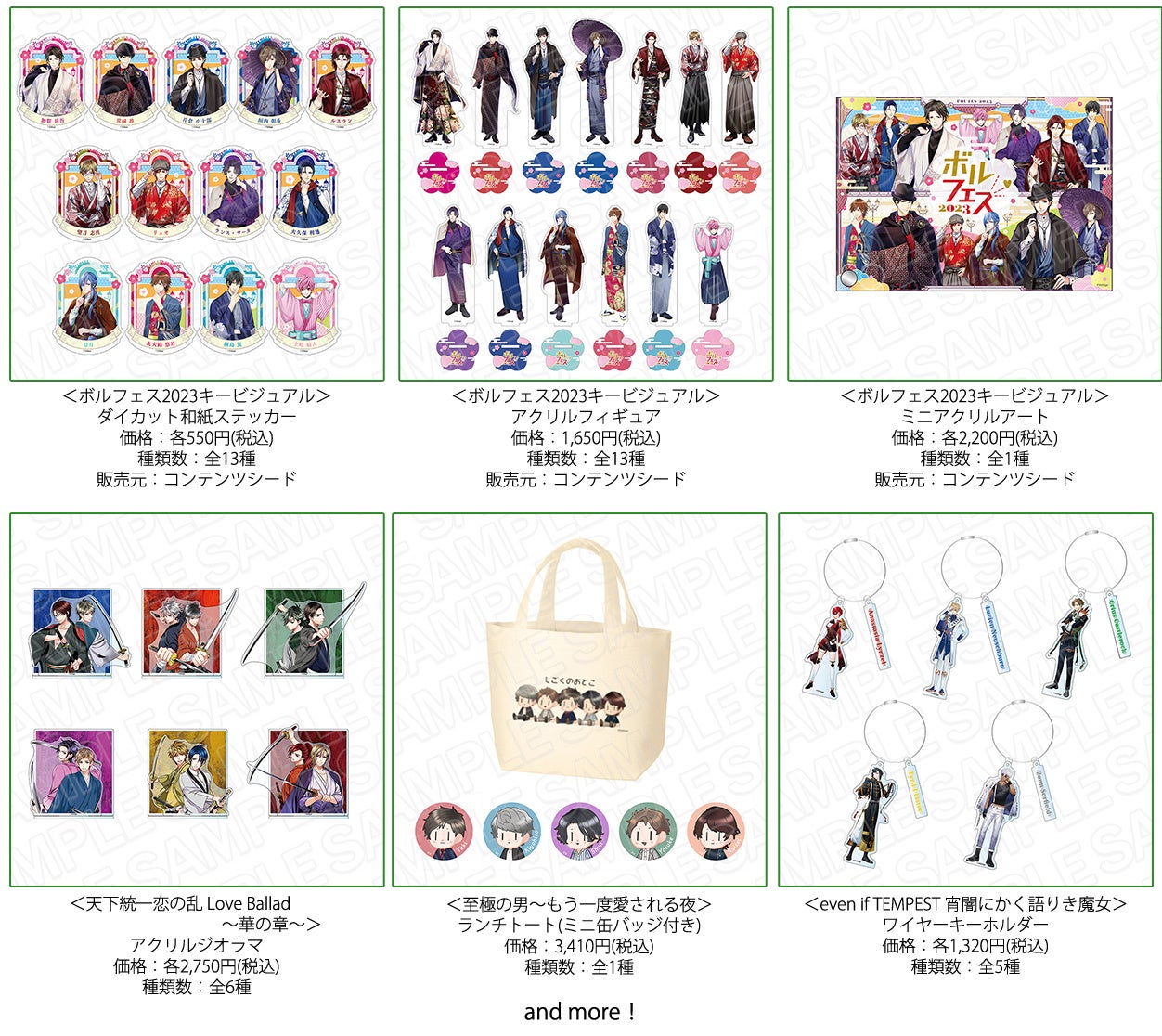 ボルフェス2023のキービジュアルを使用したグッズはもちろん、参加タイトルの新作グッズを多数販売いたします。