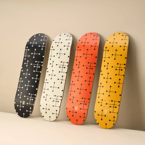 - スケートボード、イームズの椅子、トイキット、ステーショナリー