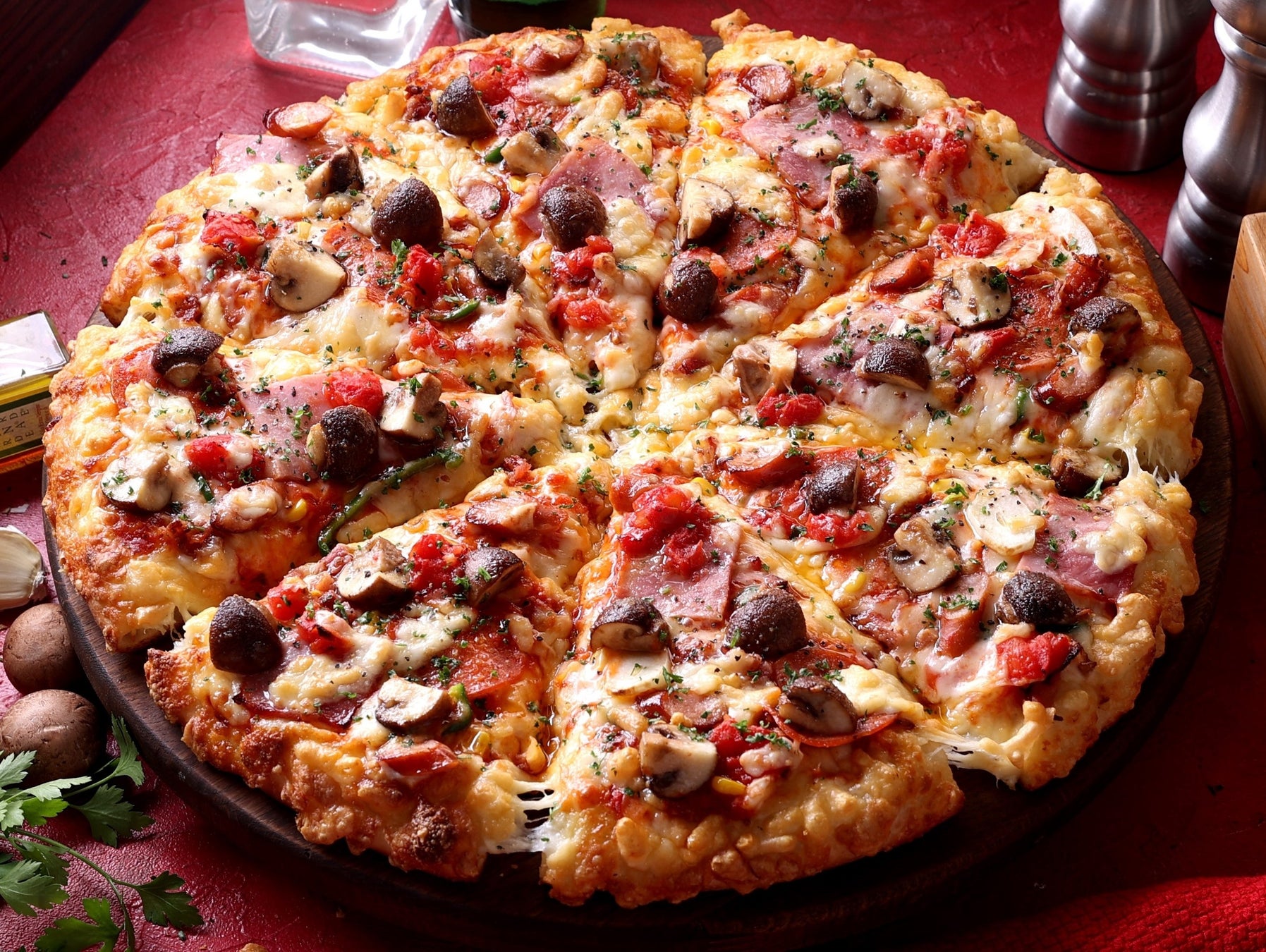 『ゲッツ』はガーリックを効かせたブラウンマッシュルームや熟成サラミ・ベーコンなどの素材を贅沢にトッピングしたガーリックピザです。