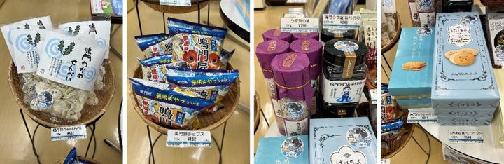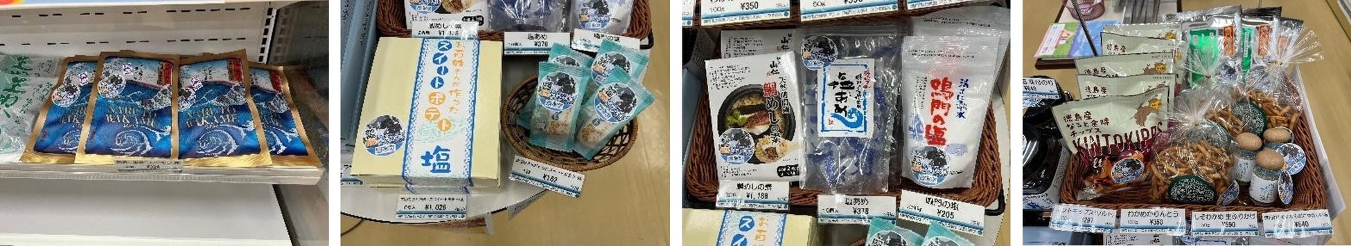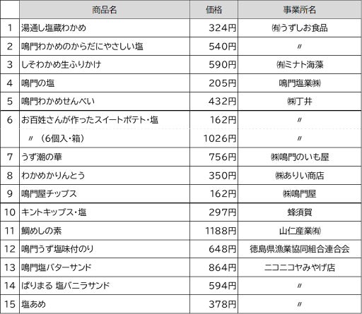 - 鳴門の塩や鯛、わかめなどを使用した食品や渦潮をモチーフにしたお菓子など15種類