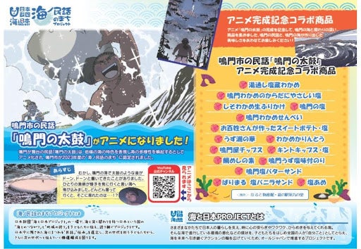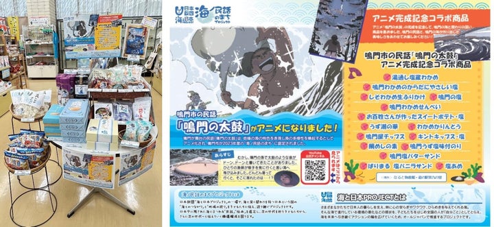日本昔ばなし協会と日本財団が進める「海ノ民話のまちプロジェクト」の一環として、鳴門の海に関連する商品を集めたアニメ完成記念コラボ企画が開催されています。