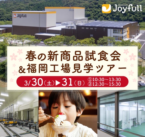 イベントでは、春の新商品の試食やオリジナルパフェ作り、福岡工場の見学などが楽しめます。