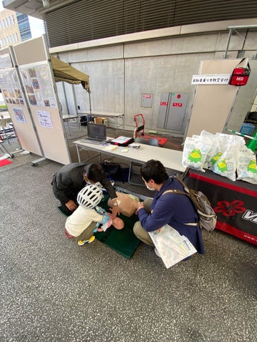 また、VC FUKUOKAブースではAEDを使用したイベントも開催され、心肺蘇生の手順を学ぶ機会も提供されました。