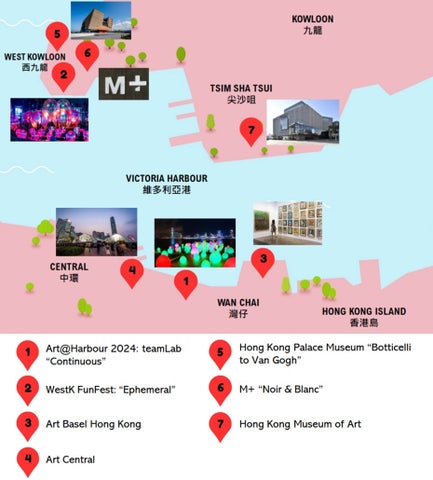 - teamLab: Continuous、WestK FunFest、ComplexCon香港、アートバーゼル香港、アートセントラル、香港故宮文化博物館、ヴィジュアルカルチャー美術館M+、Arts in 香港ハーバー・ツアー