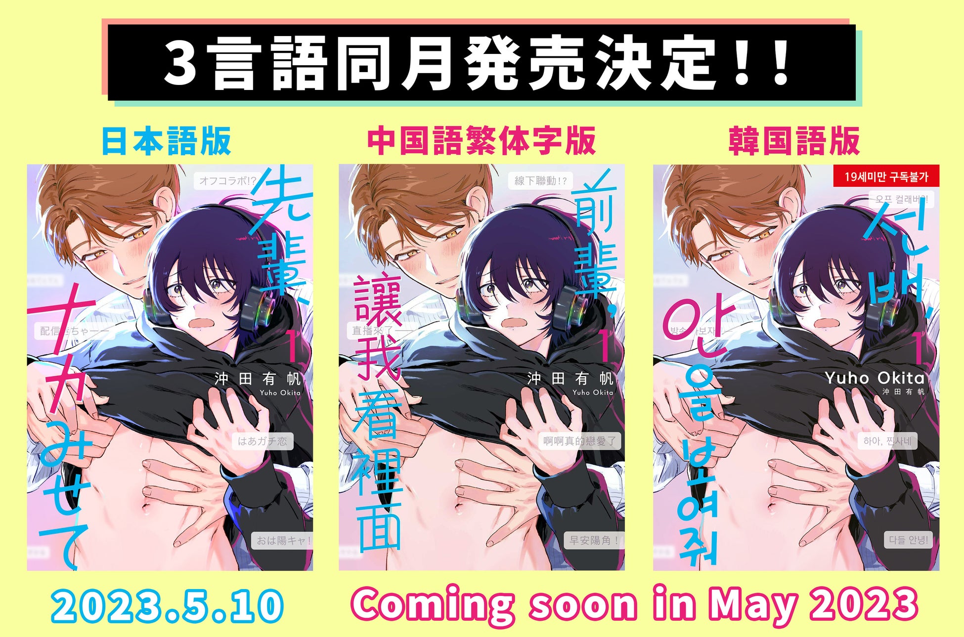 沖田有帆先生最新作 「先輩、ナカみせて 1」が 日本語版に加え、中国語繁体字版・韓国語版の同月発売が決定!