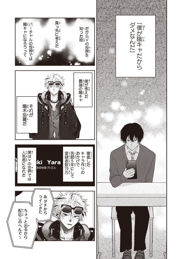 童貞陰キャの引きこもり・春輝は、陽キャVTuber・陽木としてキャラを演じ、人気を博している。
