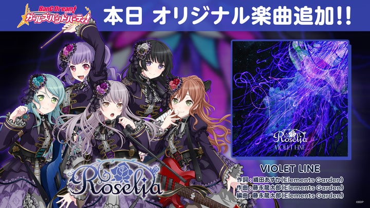 ゲーム「バンドリ! ガールズバンドパーティ!」には、新曲「VIOLET LINE」が追加され、ライブで演奏された楽曲もステージチャレンジ機能に追加されました。