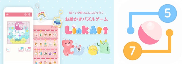 「リンクアート」は、同じ色と数字のペアをつなげてイラストを完成させるフリューのカジュアルパズルゲームです。