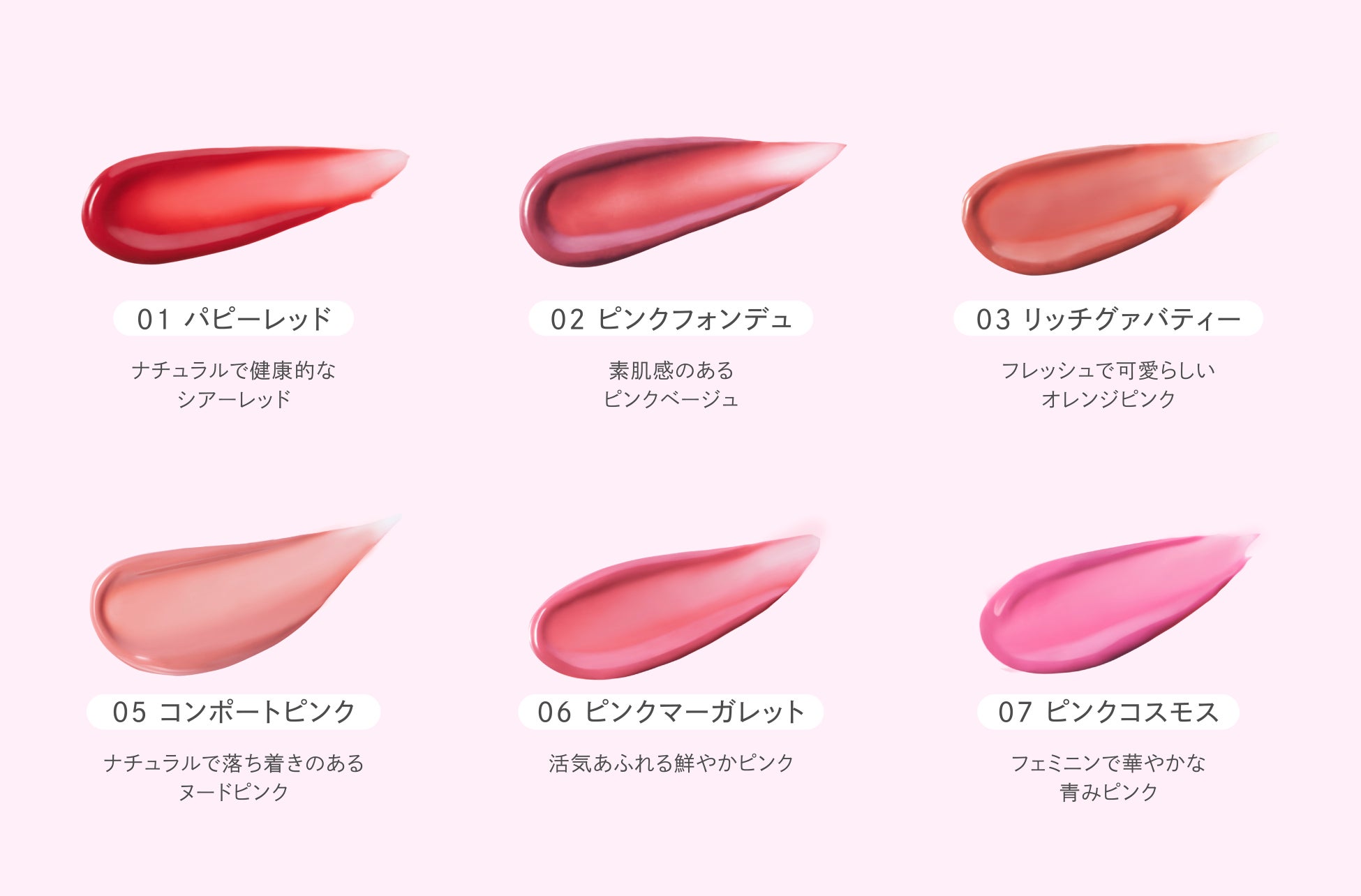 - ミューテッドシアーティント、05 コンポートピンク、06 ピンクマーガレット、07 ピンクコスモス