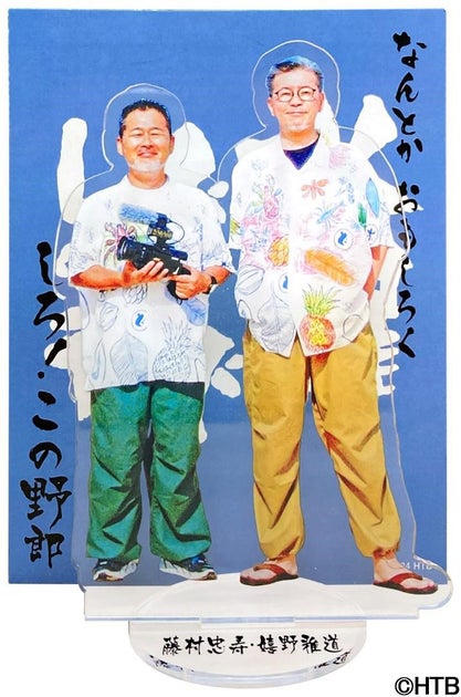水曜どうでしょう2023最新作「懐かしの西表島」から、アロハシャツ姿の藤村・嬉野ディレクターがアクリルスタンドに登場!鈴井さん・大泉さんのアクリルスタンドと一緒に飾れば西表島気分を味わえます。