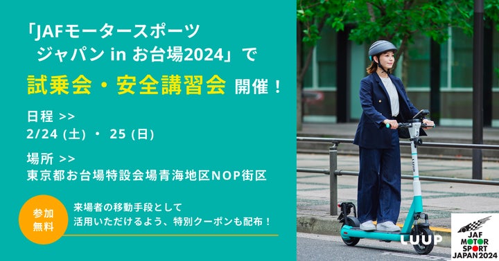 そのため、「JAFモータースポーツジャパン in お台場2024」でLUUPの電動キックボードを用いた体験試乗会・安全講習会を開催します。