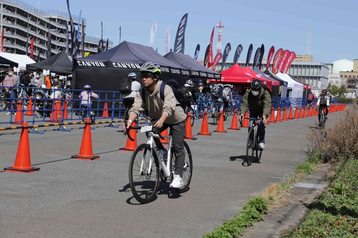 ロードバイクやeバイクなど様々な自転車が展示され、特設試乗コースも用意されています。