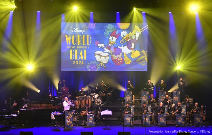ビッグバンドが『ライオン・キング』や『メリー・ポピンズ』などの名曲を演奏する第1部と、『プリンセスと魔法のキス』や『ミラベルと魔法だらけの家』など、世界8カ国を巡る旅を楽しむ第2部があります。