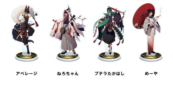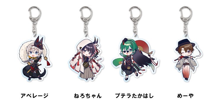 - アクリルスタンド、キーホルダー、ぬいぐるみキーホルダー、パーカー、タオル、ステッカー、カトラリーセット