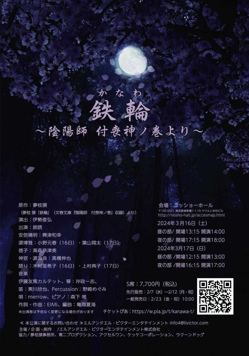 - 2024年3月に陰陽師シリーズの朗読イベント「リーディングセッション鉄輪」開催