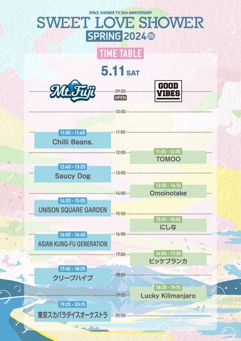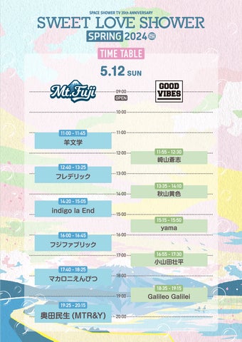 音楽専門チャンネルのスペースシャワーTV主催の野外音楽フェスティバル「SWEET LOVE SHOWER SPRING 2024」のタイムテーブルが発表されました。