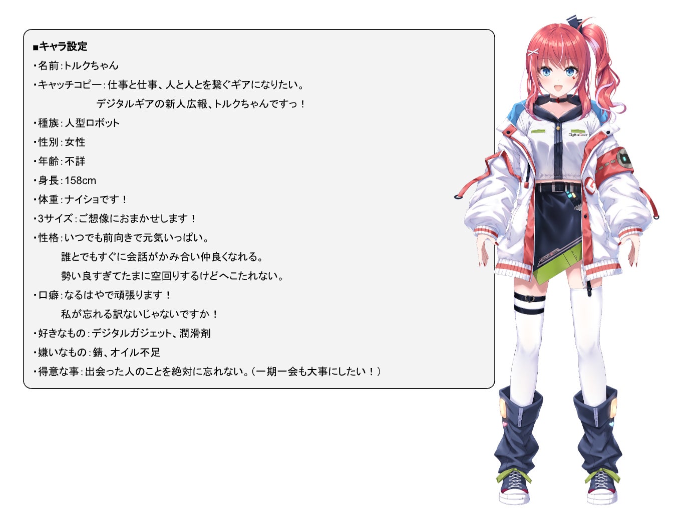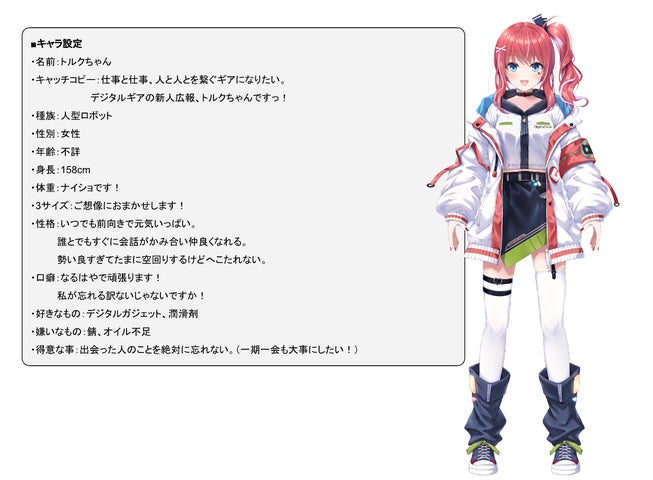 トルクちゃんは広報担当ロボで商談に強い一方、難しい仕事には苦戦する一面もあります。