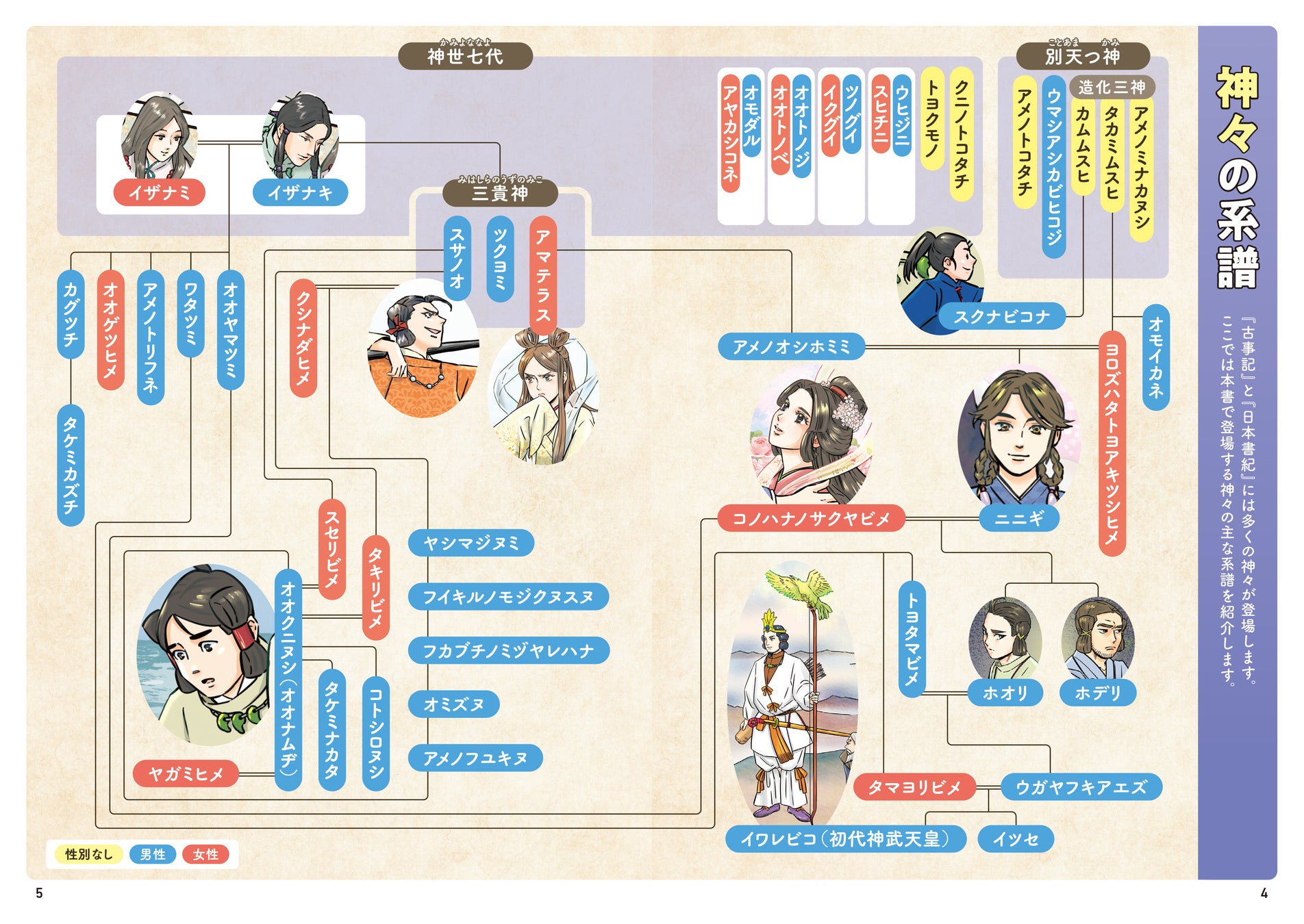 序章では基礎知識を解説し、第1章から第6章では天地のはじまりから日本の成立までをエピソードと共に紹介しています。