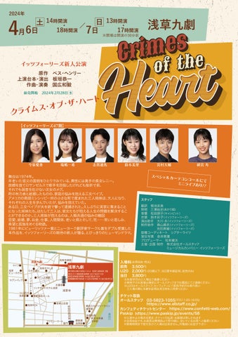 - 2024年4月6日(土)7日(日)に浅草九劇で行われる新人公演「Crimes of the heart」