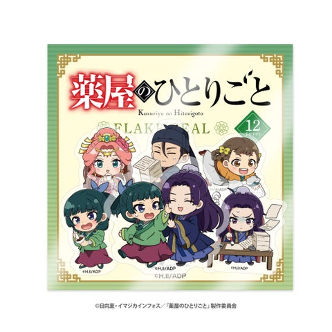 「薬屋のひとりごと」のグッズ展開は、アクリルスタンドを中心にクッション、アクリルチャーム、フレークシール、缶バッジ、湯呑など幅広いアイテムが揃っています。