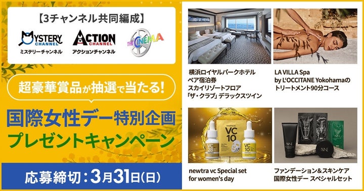 日本唯一のミステリードラマ専門チャンネル「ミステリーチャンネル」とアクション海外ドラマ専門チャンネル「アクションチャンネル」、そして洋画専門チャンネル「ザ・シネマ」が、国連の制定した国際女性デーに合わせて、女性たちの活躍を描いた作品を特集しています。