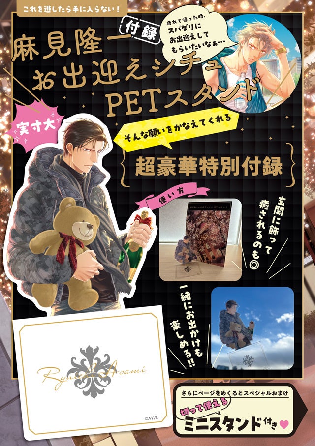 さらに、特別付録として麻見隆一お出迎えシチュPETスタンドが付いています。
