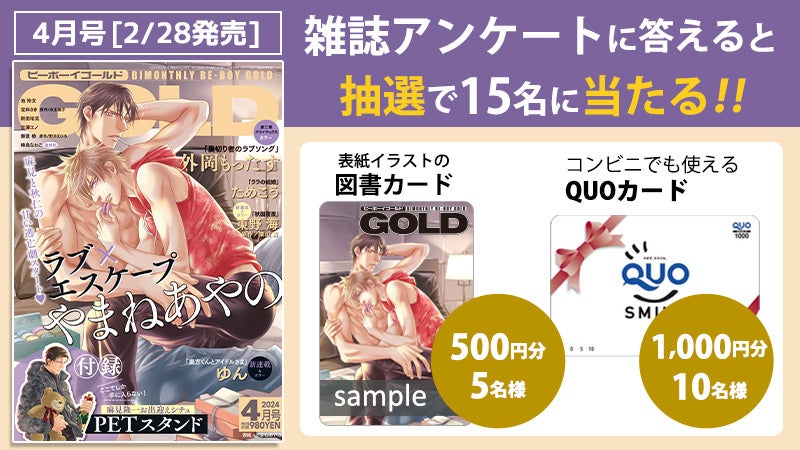 - 『ビーボーイゴールド2024年4月号』はやまねあやの先生の表紙が目印