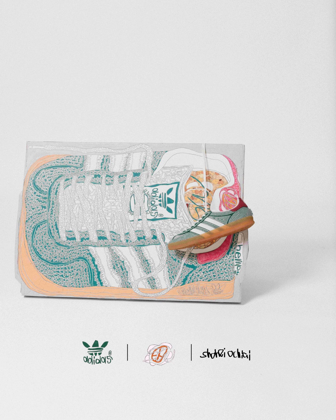 アメリカ出身のデザイナーSean Wotherspoonと日本人アーティスト落合翔平のコラボが実現し、adidas Originals SW GAZELLE INDOORをテーマにしたアイテムが登場します。