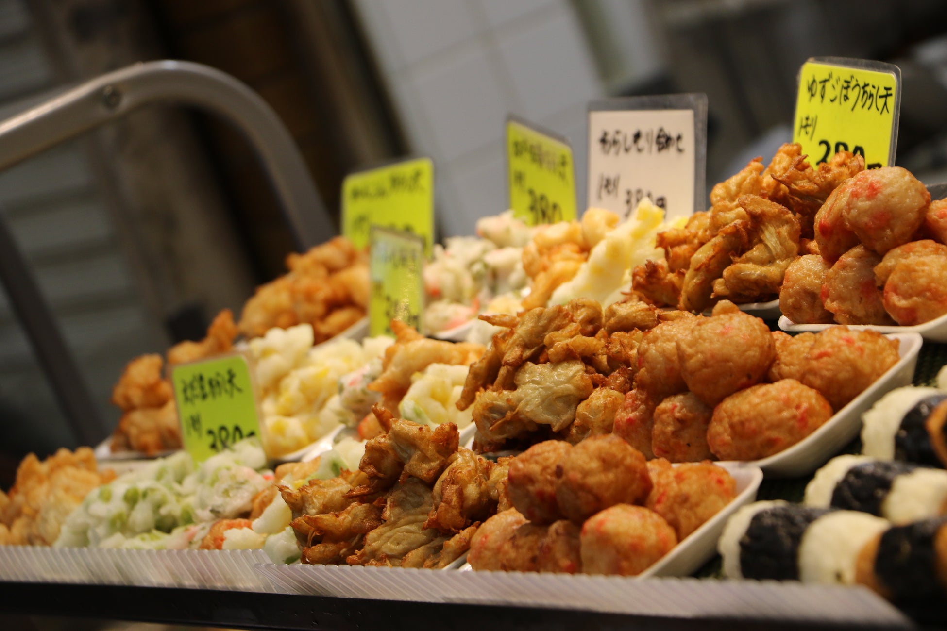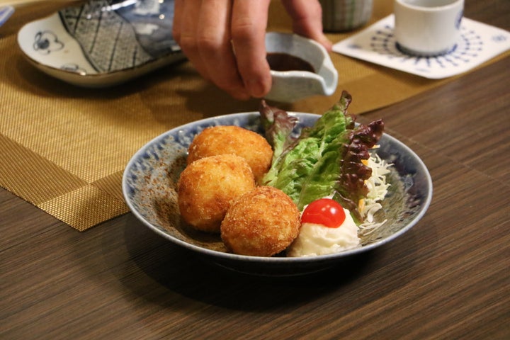 割烹片桐ではコロッケをテイクアウトし、ぶいえいとで手作りメニューを堪能。