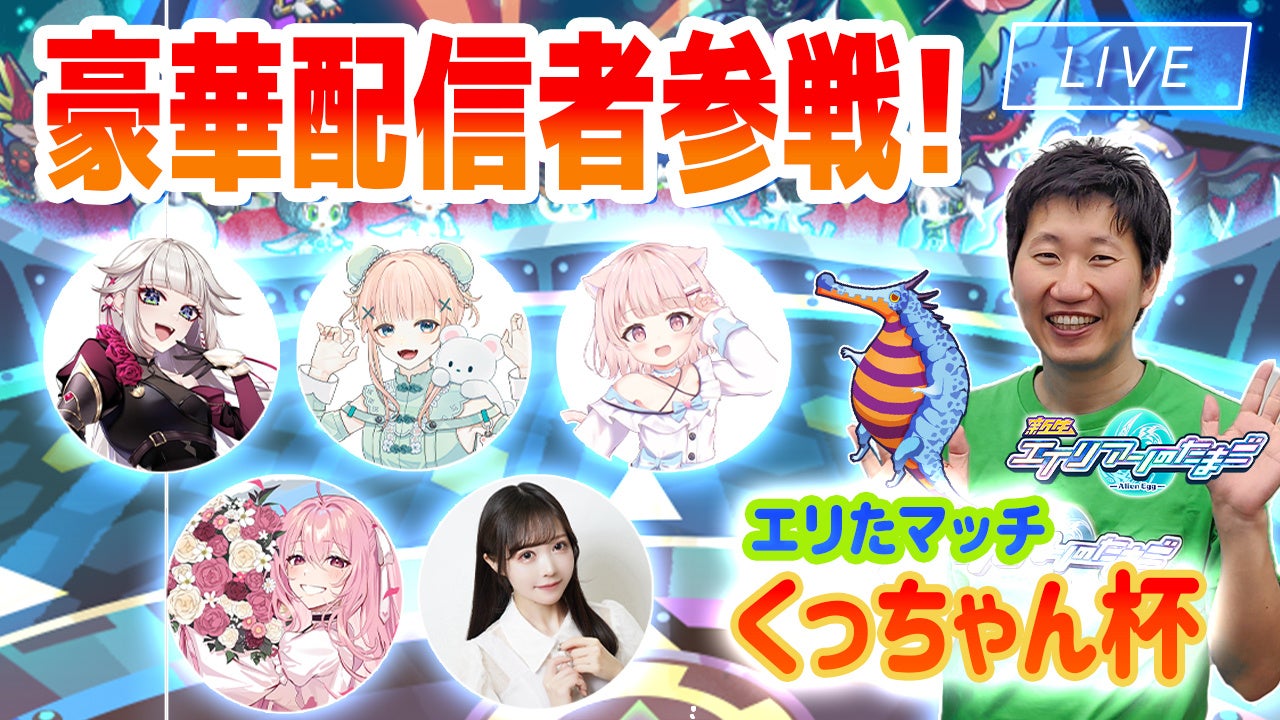 「エイリアンのたまご」はエイリアンを交配して育成するオートバトルRPGで、2024年3月7日20:00からは人気配信者と公式YouTubeのMCが参加する「エリたマッチくっちゃん杯」が開催されます。