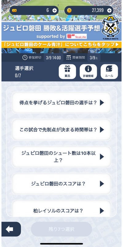 得点者や先制点の時間帯、シュート数などを予想し、ジュビロ磐田の試合をより楽しめるエンタメコンテンツです。