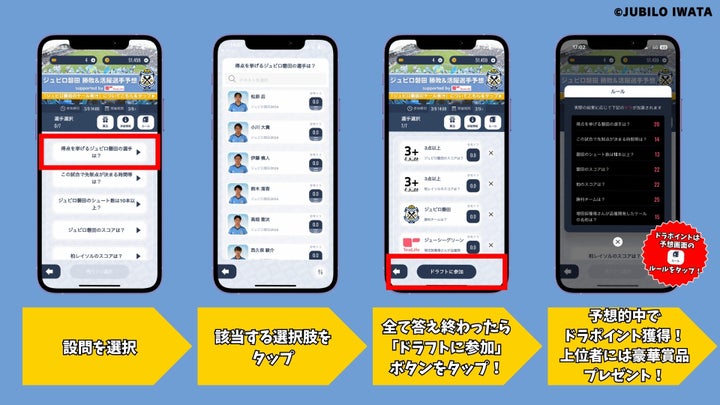 参加者は予想し、ランキング上位者には選手サイン入りグッズなどのギフトが贈られます。